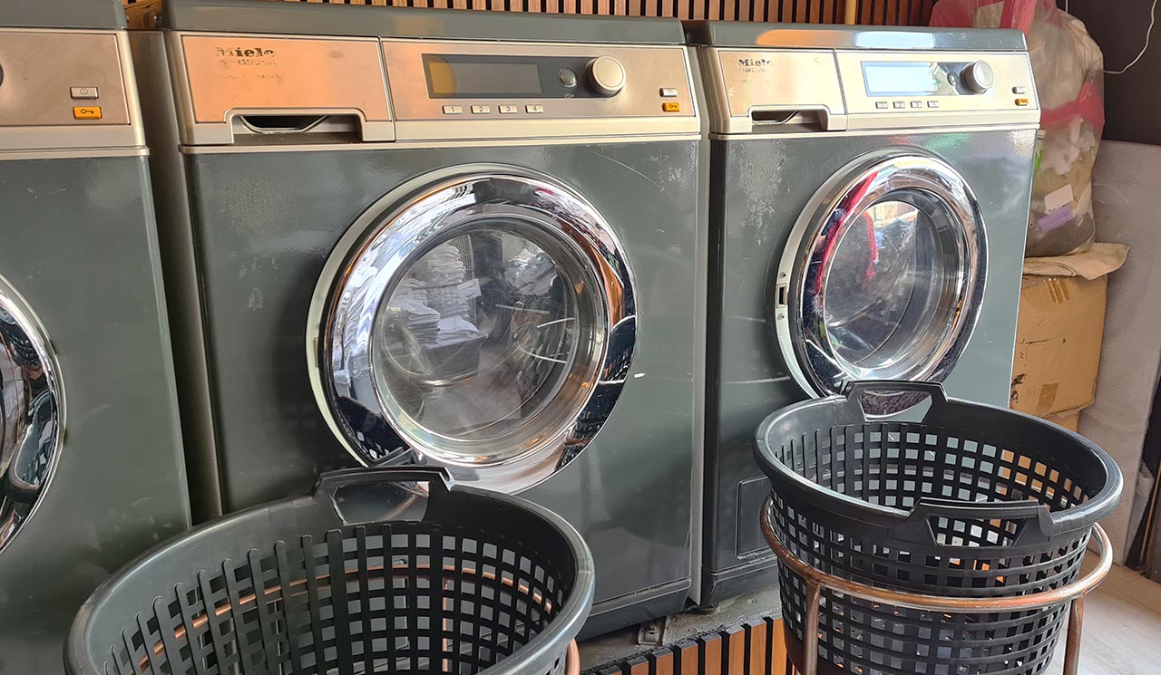 The affordable and most accessible urban European laundry option for all purposes is using laundromats, self-service laundries.