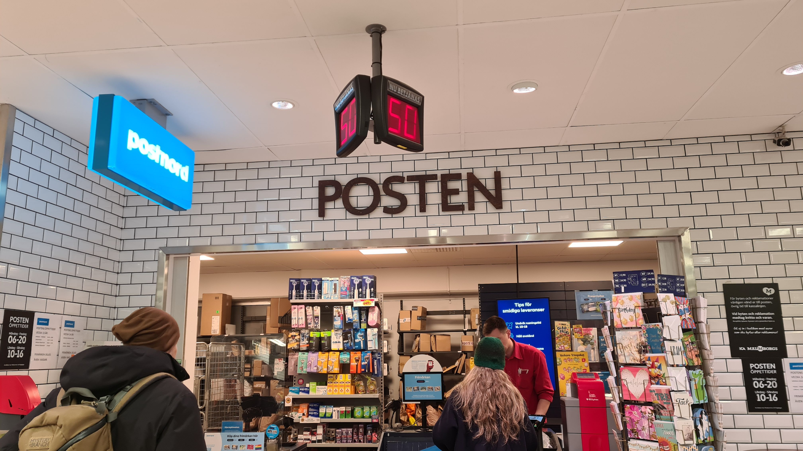 PostNord outlets are franchised service desks housed in other businesses. Well resourced and signposted counters are commonly found supermarkets, convenience stores (especially Pressbyrån outlets) and petrol stations. There is usually a selection of packaging available and convenience stores stock packaging tape and other postage needs.